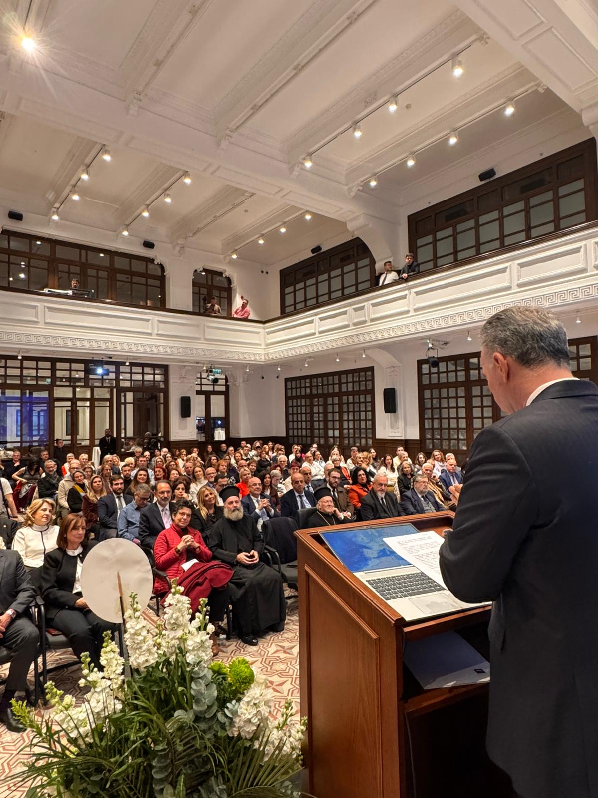 Με ξεχωριστή λαμπρότητα και την πραγματοποίηση δύο ιδιαίτερων εκδηλώσεων, το Γενικό Προξενείο της Ελλάδας στην Κωνσταντινούπολη τίμησε την Παγκόσμια Ημέρα της Ελληνικής Γλώσσας, θεσμό που καθιερώθηκε από την Ολομέλεια της 43ης Συνόδου της Γενικής Διάσκεψης της UNESCO, που συνήλθε στη Σαμαρκάνδη του Ουζμπεκιστάν το Νοέμβριο του 2025. Κεντρική ομιλήτρια στις εκδηλώσεις, που πραγματοποιήθηκαν στο εμβληματικό κτήριο της Αστικής Σχολής Γαλατά, ήταν η Oμότιμη Kαθηγήτρια του Εθνικού και Καποδιστριακού Πανεπιστημίου Αθηνών, κυρία Μαρία Ευθυμίου.