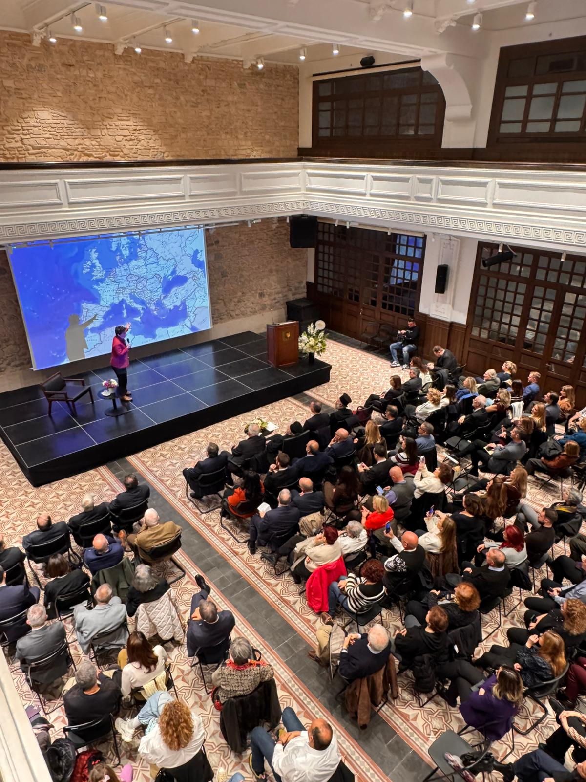 Στη συνέχεια, η κεντρική ομιλήτρια της εκδήλωσης, Καθηγήτρια κυρία Μαρία Ευθυμίου, μέσα από εύστοχες και διεισδυτικές επισημάνσεις, αναφέρθηκε στις σταδιακές μετατοπίσεις του κέντρου του πολιτισμού στον χώρο της Ευρασίας, στην εντυπωσιακή ενδυνάμωση και διάχυση της ελληνικής γλώσσας, καθώς και στην εξίσου εντυπωσιακή γεωγραφική επέκταση και μακρά διάρκεια της Ρωμαϊκής Αυτοκρατορίας, με τις σημαντικές γλωσσικές συνέπειες που αυτές συνεπέφεραν, ιδίως μετά την ανάπτυξη και εδραίωση του Χριστιανισμού. Τόνισε, τέλος, ότι και η τουρκική πλευρά, όταν βρέθηκε στη θέση της διοίκησης της Βαλκανικής και της Ανατολικής Μεσογείου, εισήλθε, για λόγους εσωτερικής και εξωτερικής πολιτικής καθώς και ισορροπιών εξουσίας, σε ανάλογες διαδικασίες υιοθέτησης όρων αυτοπροσδιορισμού και ετεροπροσδιορισμού.