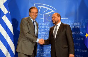 Prime Minister Antonis Samaras is currently, Tuesday morning, in a meeting with European Parliament president Martin Shulz at the government headquarters of Maximos Mansion.
