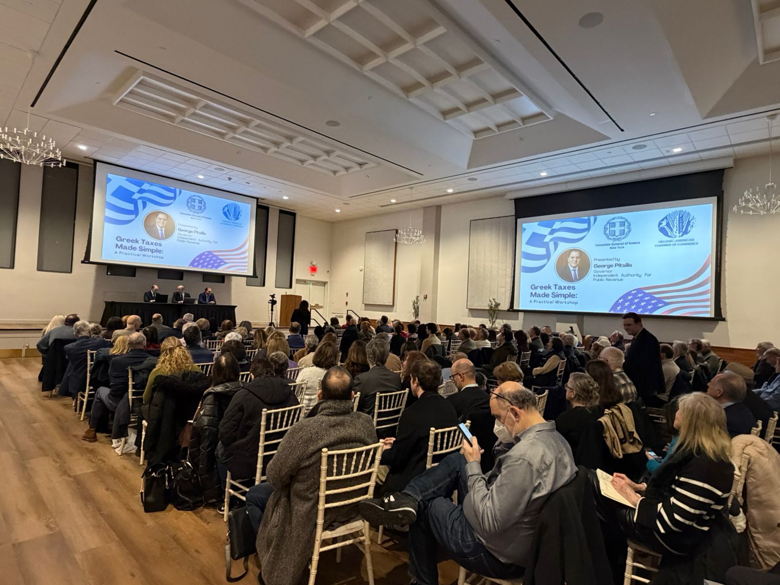 On 10 December, the Consulate General of Greece in New York, in partnership with the Hellenic American Chamber of Commerce, hosted the highly successful informational event “Greek Taxes Made Simple”, which drew a notably strong and engaged audience from the Greek-American community.