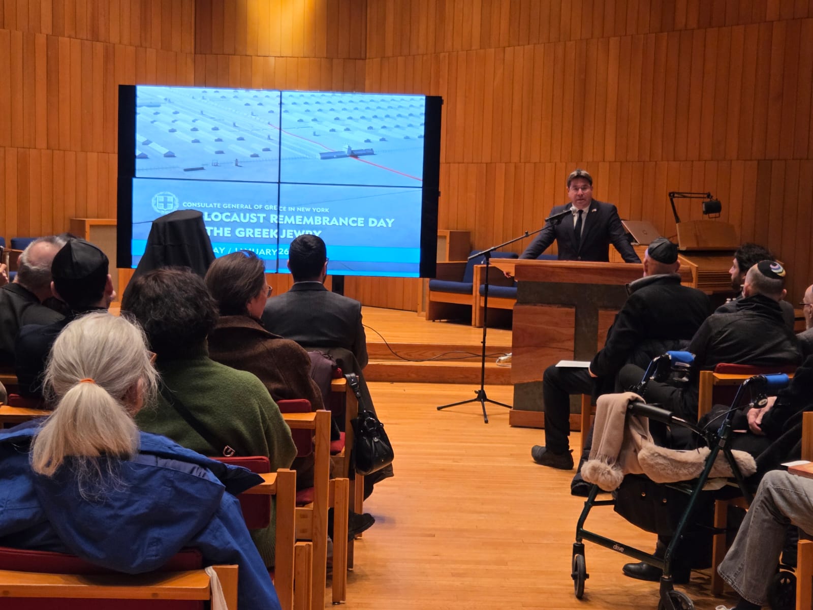 New York, January 26, 2026 – Conveying a strong message that antisemitism, racism, and all forms of hatred have no place in the modern world, the Consulate General of Greece in New York, in cooperation with the American Friends of the Jewish Museum of Greece, held its annual event entitled “Holocaust Remembrance Day for Greek Jews” in the main auditorium of Hebrew College. The event honored the victims of the Holocaust while reaffirming the commitment to preserving historical awareness and the Greek Jewish cultural heritage.