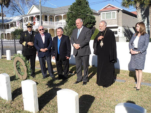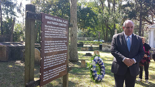 Laying a wreath at the Minorcan Burial Place and Parish Cemetery