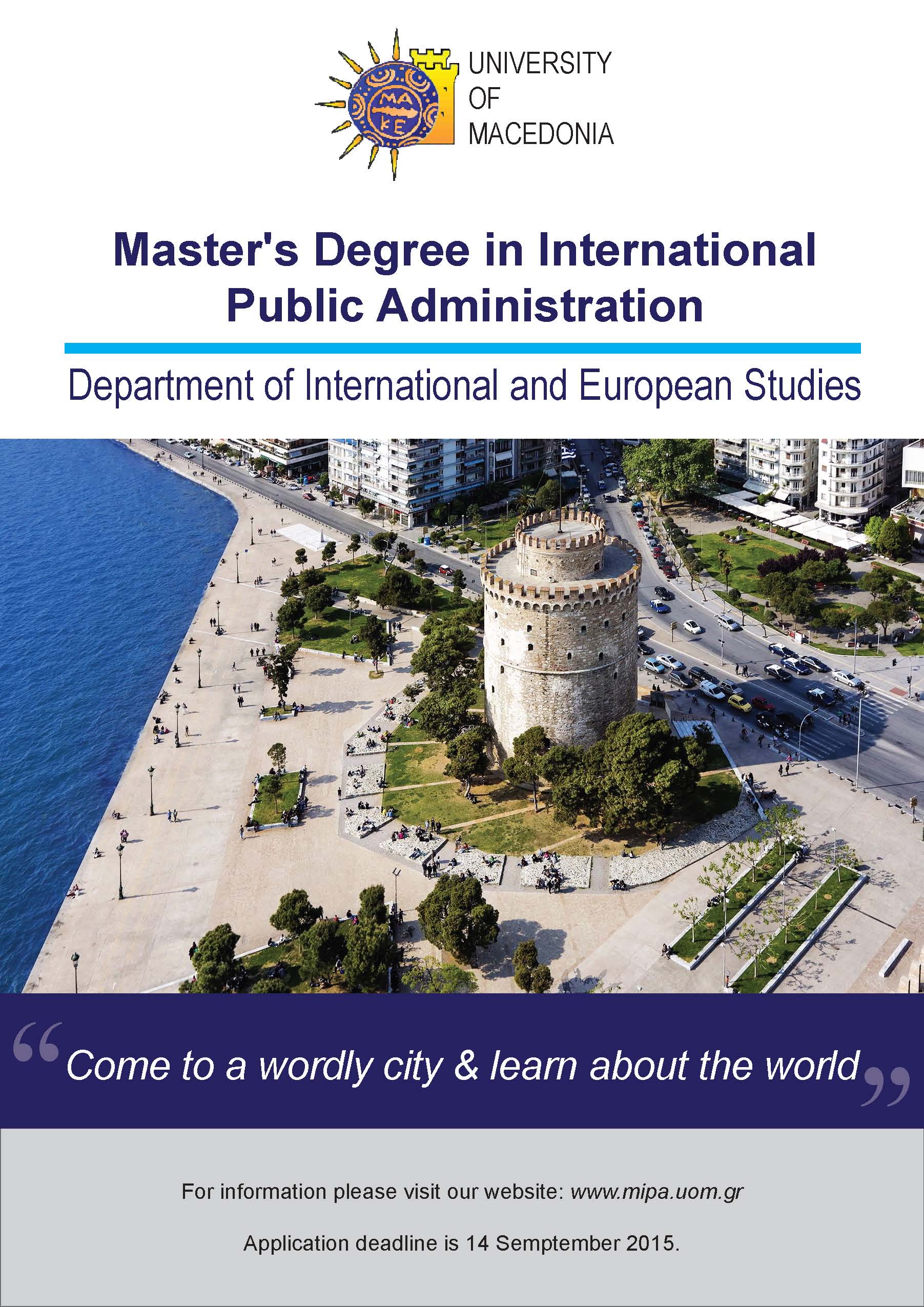 The University of Macedonia announces Master Degree Program in International Public Administration.